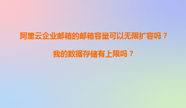 阿里云企業(yè)郵箱郵箱容量與數(shù)據(jù)存儲(chǔ)解析 阿里云企業(yè)郵箱作為一款高效的企業(yè)級(jí)郵件服務(wù)解決方案,因其穩(wěn)定性和安全性廣受企業(yè)青睞。用戶常關(guān)注其郵箱容量是否支持無(wú)限擴(kuò)容以及數(shù)據(jù)存儲(chǔ)是否有上限。本文將詳細(xì)解析