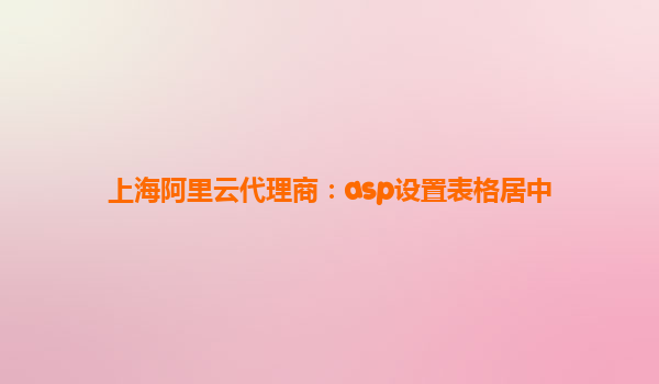 上海阿里云代理商:ASP設置表格居中的解決方案與阿里云優(yōu)勢結合 一、理解ASP設置表格居中的需求 ASP(ActiveServerPages)是一種服務器端腳本環(huán)境,廣泛應用于動態(tài)網(wǎng)頁開發(fā)。在網(wǎng)頁設計中,表格是常