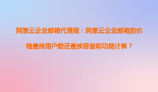 阿里云企業(yè)郵箱代理商:阿里云企業(yè)郵箱的價(jià)格是按用戶數(shù)還是按容量和功能計(jì)算? 一、阿里云企業(yè)郵箱的定價(jià)模式解析 阿里云企業(yè)郵箱的定價(jià)通常以用戶數(shù)為主要計(jì)算依據(jù),同時(shí)兼顧容量和功能。其核心