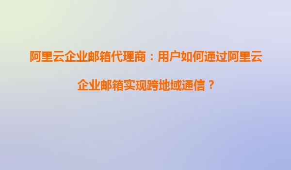 阿里云企業(yè)郵箱代理商:阿里云企業(yè)郵箱如何支持跨地域郵件收發(fā)? 一、引言 在全球化的商業(yè)環(huán)境中,企業(yè)跨地域協(xié)作日益頻繁,穩(wěn)定的郵件通信成為業(yè)務(wù)高效運(yùn)轉(zhuǎn)的基礎(chǔ)。阿里云企業(yè)郵箱作為國(guó)內(nèi)領(lǐng)先的