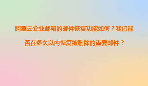 阿里云企業(yè)郵箱郵件恢復(fù)功能詳解及其優(yōu)勢 郵件恢復(fù)功能的重要性 在日常工作中,誤刪重要郵件是許多企業(yè)用戶可能遇到的頭疼問題。一旦郵件被刪除,如果沒有可靠的恢復(fù)機制,可能導(dǎo)致重要信息丟失、業(yè)務(wù)中斷甚至法律