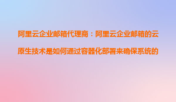 阿里云企業(yè)郵箱代理商:阿里云企業(yè)郵箱的云原生技術是如何通過容器化部署來確保系統的彈性擴展的? 引言 隨著企業(yè)數字化轉型的加速,高效穩(wěn)定的企業(yè)郵箱服務成為企業(yè)管理溝通的重要工具。阿里云企業(yè)郵箱作