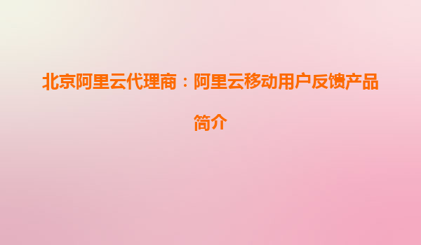 北京阿里云代理商:阿里云移動用戶反饋產(chǎn)品簡介 作為中國領(lǐng)先的云計算服務(wù)提供商,阿里云憑借其強大的技術(shù)實力和豐富的行業(yè)經(jīng)驗,為企業(yè)和開發(fā)者提供了全面的云計算解決方案。其中,阿里云移動用戶反饋產(chǎn)品(Mo