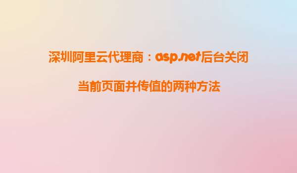 深圳阿里云代理商:ASP.NET后臺(tái)關(guān)閉當(dāng)前頁(yè)面并傳值的兩種方法 在ASP.NET開發(fā)中,常常需要在用戶操作后關(guān)閉當(dāng)前頁(yè)面并傳遞數(shù)據(jù)。在這篇文章中,我們將探討如何通過ASP.NET后臺(tái)關(guān)閉當(dāng)前頁(yè)面并傳值的兩種方法。同時(shí),
