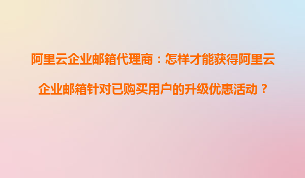阿里云企業(yè)郵箱代理商:如何獲取針對(duì)已購買用戶的升級(jí)優(yōu)惠活動(dòng) 一、阿里云企業(yè)郵箱的優(yōu)勢(shì) 在當(dāng)今數(shù)字化時(shí)代,企業(yè)郵箱不僅是企業(yè)內(nèi)部溝通的工具,更是企業(yè)形象和業(yè)務(wù)安全的重要保障。阿里云企業(yè)郵箱憑