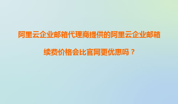 阿里云企業(yè)郵箱代理商提供的續(xù)費(fèi)價(jià)格會(huì)比官網(wǎng)更優(yōu)惠嗎? 在數(shù)字化辦公時(shí)代,企業(yè)郵箱已成為日常溝通和商務(wù)往來的核心工具之一。阿里云企業(yè)郵箱憑借其穩(wěn)定性、安全性和豐富的功能,成為眾多企業(yè)的首選。然而,企