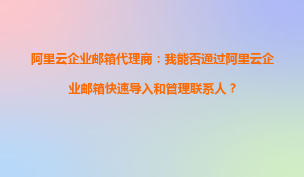阿里云企業(yè)郵箱代理商:我能在阿里云企業(yè)郵箱中批量導(dǎo)入客戶聯(lián)系人嗎? 在當今數(shù)字化辦公環(huán)境中,企業(yè)郵箱已成為企業(yè)日常溝通的重要工具。阿里云企業(yè)郵箱憑借其穩(wěn)定、安全、高效的特點,贏得了眾多企業(yè)的青睞。而