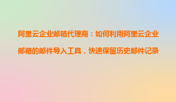 阿里云企業(yè)郵箱代理商:如何利用阿里云企業(yè)郵箱的郵件導(dǎo)入工具,快速保留歷史郵件記錄? 引言 在數(shù)字化轉(zhuǎn)型的浪潮中,企業(yè)郵箱是高效溝通的必備工具。阿里云企業(yè)郵箱憑借強大的功能、穩(wěn)定的性能和便
