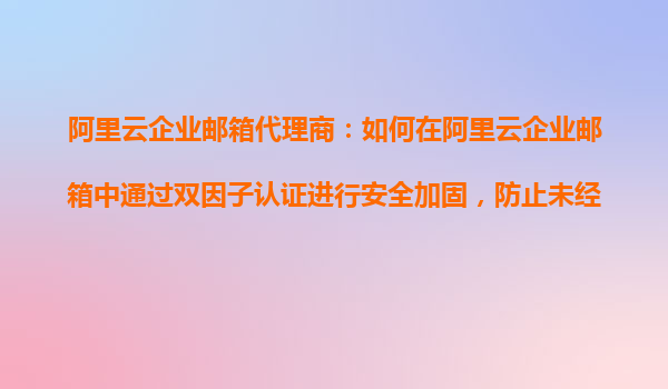 阿里云企業(yè)郵箱代理商:如何在阿里云企業(yè)郵箱中通過雙因子認(rèn)證進(jìn)行安全加固,防止未經(jīng)授權(quán)的訪問? 一、阿里云企業(yè)郵箱的優(yōu)勢 阿里云企業(yè)郵箱作為國內(nèi)領(lǐng)先的企業(yè)級郵箱服務(wù),憑借其強(qiáng)大的技術(shù)實(shí)力和豐