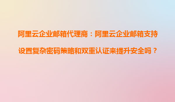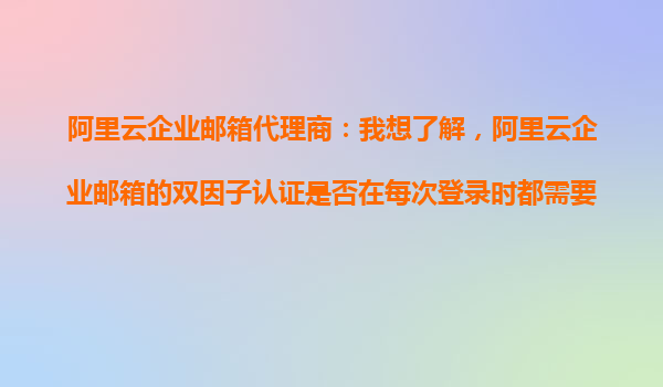 阿里云企業(yè)郵箱代理商:我想了解,阿里云企業(yè)郵箱的雙因子認(rèn)證是否在每次登錄時都需要輸入? 在當(dāng)今數(shù)字化時代,企業(yè)郵箱作為企業(yè)日常溝通和業(yè)務(wù)管理的重要工具,其安全性尤為關(guān)鍵。阿里云企業(yè)郵箱作