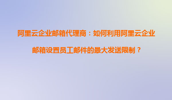 阿里云企業(yè)郵箱代理商:如何利用阿里云企業(yè)郵箱設(shè)置員工郵件的最大發(fā)送限制? 在當(dāng)今數(shù)字化辦公環(huán)境中,企業(yè)郵箱不僅是通信工具,更是企業(yè)形象與數(shù)據(jù)安全管理的重要組成部分。阿里云企業(yè)郵箱以其穩(wěn)定、