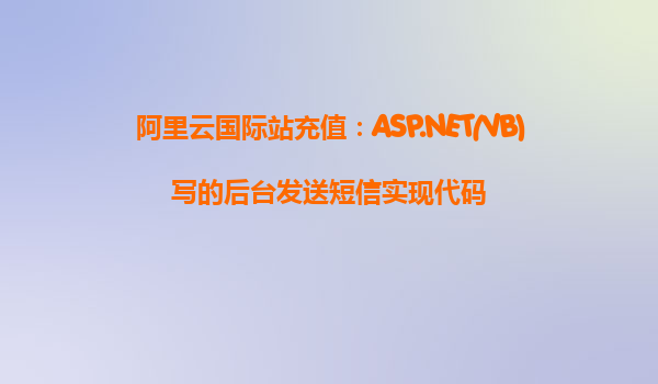阿里云國際站充值:ASP.NET(VB)寫的后臺發(fā)送短信實現(xiàn)代碼 在現(xiàn)代的網(wǎng)絡應用中,短信作為一種重要的用戶驗證和通知手段,廣泛應用于電商、金融、社交等各種領域。阿里云作為全球領先的云計算服務提供商,其短信服務