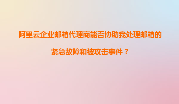 阿里云企業(yè)郵箱代理商能否協(xié)助我處理郵箱的緊急故障和被攻擊事件? 在數(shù)字化辦公時(shí)代,企業(yè)郵箱不僅是溝通工具,更是業(yè)務(wù)運(yùn)營的重要支撐。當(dāng)企業(yè)遭遇郵箱故障或安全攻擊時(shí),能否快速獲得專業(yè)支持至關(guān)重要。本文將