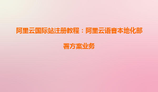 阿里云國際站注冊教程:阿里云語音本地化部署方案 引言 隨著全球化進(jìn)程的加速,企業(yè)在進(jìn)行語音相關(guān)業(yè)務(wù)時,越來越需要考慮如何在本地化環(huán)境中高效部署語音服務(wù)。阿里云憑借其強大的技術(shù)實力和全球化布
