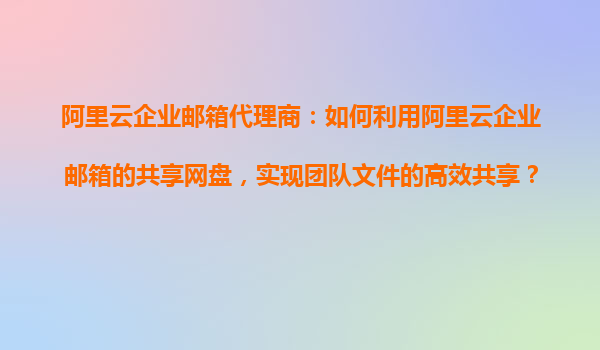 阿里云企業(yè)郵箱共享網(wǎng)盤:團隊文件高效協(xié)作的利器 一、共享網(wǎng)盤的核心價值 在數(shù)字化辦公時代,團隊文件的高效共享與協(xié)作已成為企業(yè)生產(chǎn)力的關(guān)鍵。阿里云企業(yè)郵箱的共享網(wǎng)盤功能,提供了安全、穩(wěn)定