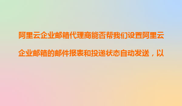 阿里云企業(yè)郵箱代理商能否幫我們?cè)O(shè)置阿里云企業(yè)郵箱的郵件報(bào)表和投遞狀態(tài)自動(dòng)發(fā)送? 一、企業(yè)郵箱的重要性與阿里云企業(yè)郵箱的優(yōu)勢 在現(xiàn)代企業(yè)管理中,企業(yè)郵箱不僅是內(nèi)部溝通的重要工具,更是對(duì)外商務(wù)
