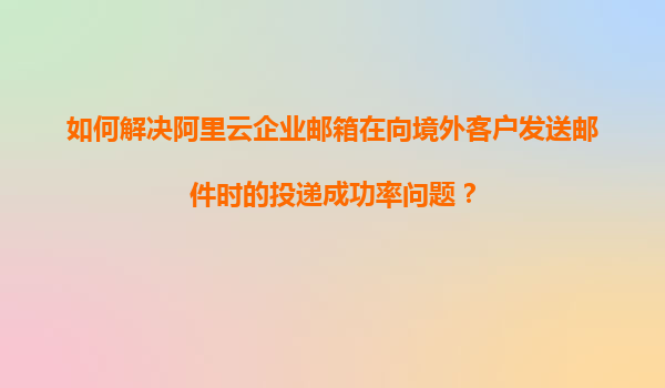 如何解決阿里云企業(yè)郵箱在向境外客戶發(fā)送郵件時(shí)的投遞成功率問題? 隨著全球化的加速,企業(yè)與境外客戶的郵件往來日益頻繁。然而,受限于國際網(wǎng)絡(luò)環(huán)境、反垃圾郵件策略等因素,企業(yè)郵箱向境外投遞郵件時(shí)可能