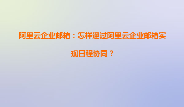 阿里云企業(yè)郵箱:如何通過阿里云企業(yè)郵箱實(shí)現(xiàn)高效日程協(xié)同? 一、日程協(xié)同的重要性 在現(xiàn)代企業(yè)中,高效的日程協(xié)同是提升團(tuán)隊(duì)生產(chǎn)力的關(guān)鍵。通過統(tǒng)一的日程管理工具,團(tuán)隊(duì)成員可以清晰地了解彼此的工作安排,避