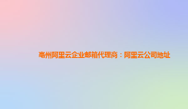 亳州阿里云企業(yè)郵箱代理商:阿里云公司地址 亳州阿里云企業(yè)郵箱代理商為您提供專(zhuān)業(yè)的企業(yè)郵箱服務(wù),讓您的企業(yè)擁有更高效的溝通和協(xié)作工具。阿里云公司地址位于國(guó)內(nèi)各大城市,為客戶(hù)提供快速優(yōu)質(zhì)的服務(wù)。 阿里云企