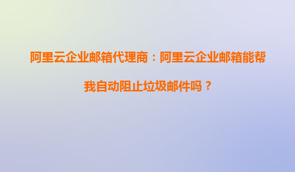 阿里云企業(yè)郵箱代理商:阿里云企業(yè)郵箱能幫我自動阻止垃圾郵件嗎? 一、垃圾郵件的困擾與需求 在數(shù)字化辦公時代,企業(yè)郵箱已成為日常溝通的重要工具,但隨之而來的垃圾郵件問題也令人頭疼。垃圾郵件不僅占用