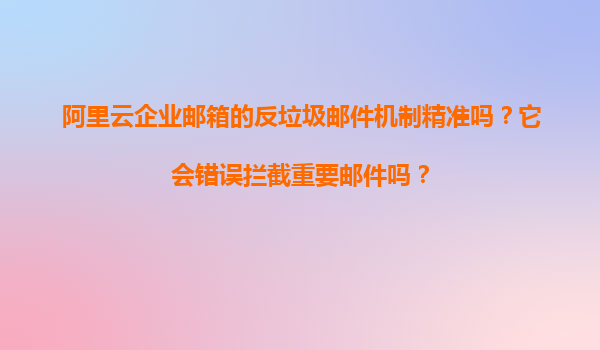 阿里云企業(yè)郵箱的反垃圾郵件機(jī)制精準(zhǔn)嗎?它會錯誤攔截重要郵件嗎? 一、阿里云企業(yè)郵箱反垃圾郵件機(jī)制概述 阿里云企業(yè)郵箱作為一款專業(yè)的企業(yè)級郵件服務(wù)產(chǎn)品,其反垃圾郵件機(jī)制采用了多層次、智能化的技術(shù)手段。系