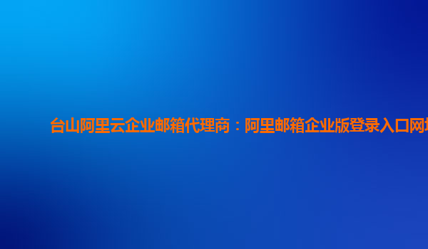 臺(tái)山阿里云企業(yè)郵箱代理商:阿里郵箱企業(yè)版登錄入口網(wǎng)址 阿里云企業(yè)郵箱代理商介紹 阿里云企業(yè)郵箱代理商是指授權(quán)代理銷售阿里云企業(yè)郵箱的合作伙伴。臺(tái)山阿里云企業(yè)郵箱代理商是在臺(tái)山地區(qū)經(jīng)營阿里云企業(yè)郵箱服務(wù)