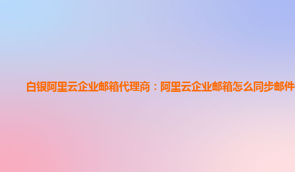 白銀阿里云企業(yè)郵箱代理商:阿里云企業(yè)郵箱怎么同步郵件記錄 阿里云企業(yè)郵箱是一款專業(yè)的企業(yè)級(jí)郵箱服務(wù),具有穩(wěn)定性和可靠性高的特點(diǎn),廣泛應(yīng)用于各個(gè)行業(yè)。作為白銀阿里云企業(yè)郵箱代理商,我們將幫助您了解如何同