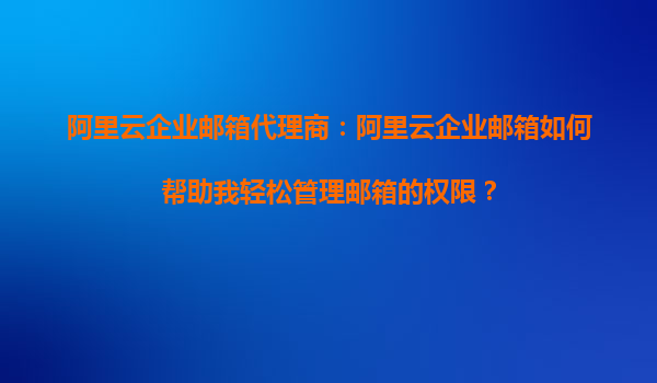 阿里云企業(yè)郵箱如何幫助您輕松管理郵箱權限 一、權限管理的重要性 在企業(yè)日常運營中,郵箱作為重要的通訊工具,承擔著內(nèi)外溝通、文件傳輸?shù)榷嘀毓δ?。如何高效、安全地管理郵箱權限,成為企業(yè)IT管理的重要課