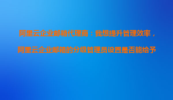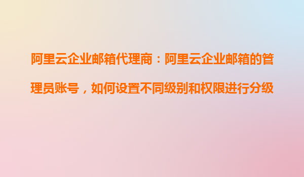 阿里云企業(yè)郵箱代理商:提升管理效率的分級管理員權限設置解析 一、阿里云企業(yè)郵箱的核心優(yōu)勢 阿里云企業(yè)郵箱作為國內(nèi)領先的企業(yè)通信解決方案,憑借阿里云強大的技術實力和生態(tài)體系,為企業(yè)用戶提供了高效