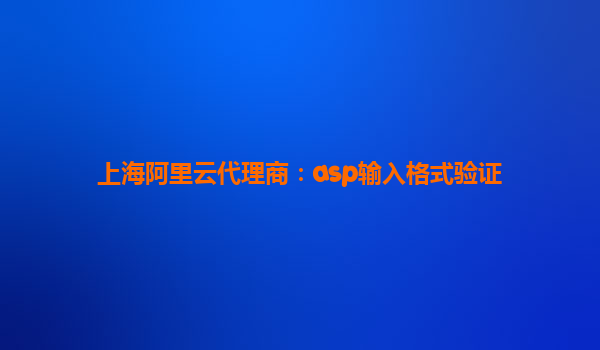 上海阿里云代理商:ASP輸入格式驗證的必要性與阿里云解決方案優(yōu)勢 為什么ASP輸入格式驗證至關重要? 在Web應用程序開發(fā)中,輸入格式驗證是確保數(shù)據(jù)安全性和用戶