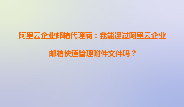 阿里云企業(yè)郵箱代理商:我能通過阿里云企業(yè)郵箱快速管理附件文件嗎? 一、高效管理附件——阿里云企業(yè)郵箱的核心優(yōu)勢 在現(xiàn)代辦公中,文件附件的管理與分享是企業(yè)溝通的關(guān)鍵環(huán)節(jié)。阿