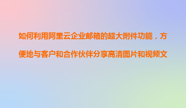 如何利用阿里云企業(yè)郵箱的超大附件功能高效分享高清圖片和視頻 在數(shù)字化商務(wù)合作中,高清圖片、4K視頻等大文件的傳輸需求日益增長。阿里云企業(yè)郵箱憑借其創(chuàng)新的"超大附件"功能,為企業(yè)用戶提供了安全穩(wěn)定的文件