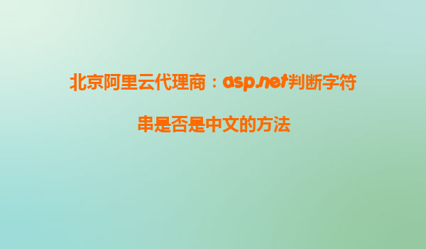 北京阿里云代理商:ASP.NET判斷字符串是否是中文的方法 在Web開發(fā)過程中,尤其是在處理用戶輸入或數(shù)據(jù)驗證時,經(jīng)常需要判斷一個字符串中是否包含中文字符。對于使用ASP.NET進(jìn)行開發(fā)的用戶來說,掌握這一技術(shù)尤為