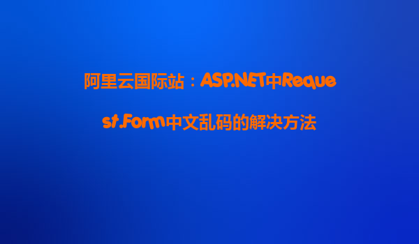 阿里云國際站:ASP.NET中Request.Form中文亂碼的解決方法 在開發(fā)Web應(yīng)用時,尤其是在處理表單數(shù)據(jù)時,中文字符的處理一直是開發(fā)者遇到的一大難題。特別是在ASP.NET中,使用Request.Form獲取表單數(shù)據(jù)時,中文往往會
