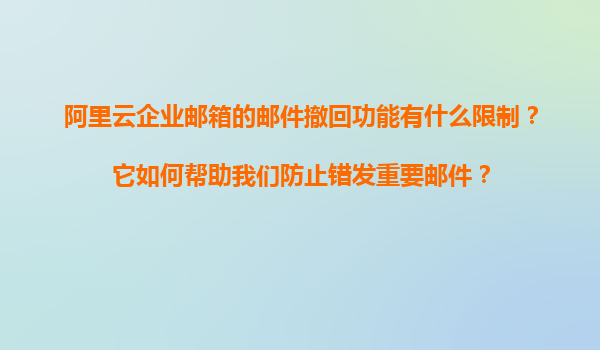 阿里云企業(yè)郵箱郵件撤回功能詳解與優(yōu)勢(shì)分析 一、郵件撤回功能的價(jià)值與應(yīng)用場(chǎng)景 在日常辦公中,誤發(fā)郵件的情況時(shí)有發(fā)生,如錯(cuò)發(fā)對(duì)象、內(nèi)容錯(cuò)誤或包含敏感信息等。阿里云企業(yè)郵箱的郵件撤回功能為企業(yè)用戶提供了"后