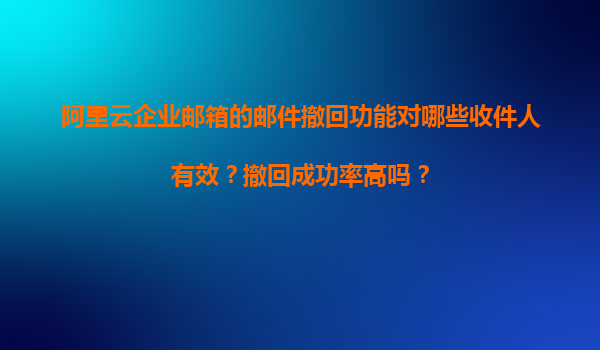 阿里云企業(yè)郵箱的郵件撤回功能對(duì)哪些收件人有效?撤回成功率高嗎? 阿里云企業(yè)郵箱:高效溝通與管理的智能助手 在數(shù)字化辦公時(shí)代,企業(yè)郵箱不僅是溝通工具,更是提升工作效率的重要平臺(tái)。阿里云企業(yè)郵箱憑