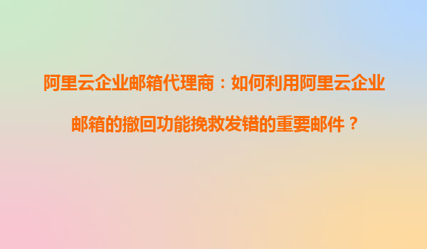 阿里云企業(yè)郵箱代理商:如何利用阿里云企業(yè)郵箱的撤回功能挽救發(fā)錯(cuò)的重要郵件? 在快節(jié)奏的商業(yè)溝通中,發(fā)送郵件是日常工作的一部分,但難免會(huì)出現(xiàn)發(fā)錯(cuò)郵件的情況。尤其當(dāng)郵件內(nèi)容涉及重要信息或敏感數(shù)據(jù)時(shí),