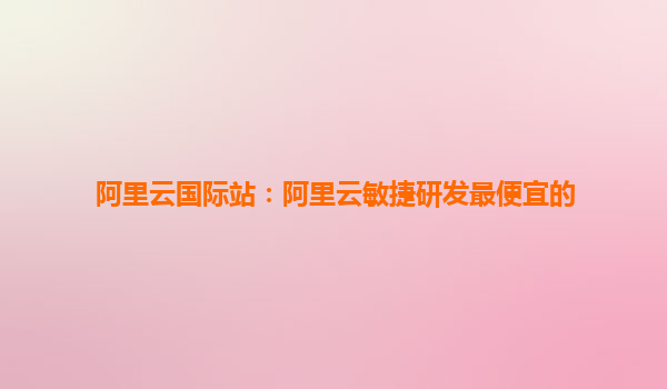 阿里云國際站:低成本高效能的敏捷研發(fā)解決方案 一、阿里云國際站——全球開發(fā)者的首選云平臺 阿里云國際站作為全球領(lǐng)先的云計(jì)算服務(wù)提供商,為開發(fā)者提供了穩(wěn)定、安全且高性價(jià)比的云服務(wù)。其遍布全球的數(shù)據(jù)中