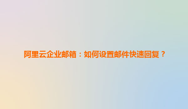 阿里云企業(yè)郵箱:如何設(shè)置郵件快速回復(fù) 隨著企業(yè)信息化進(jìn)程的加速,電子郵件已經(jīng)成為企業(yè)日常溝通和工作的必備工具。為了提高工作效率,阿里云企業(yè)郵箱為用戶提供了多種實(shí)用功能,其中郵件快速回復(fù)功能尤為重要。本