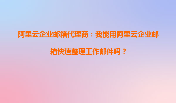 阿里云企業(yè)郵箱代理商:我能用阿里云企業(yè)郵箱快速整理工作郵件嗎? 在當(dāng)今快節(jié)奏的商業(yè)環(huán)境中,高效管理電子郵件已成為企業(yè)日常運(yùn)營(yíng)的關(guān)鍵環(huán)節(jié)。作為阿里云企業(yè)郵箱代理商,我們經(jīng)常被客戶詢問:"阿里云企業(yè)郵箱