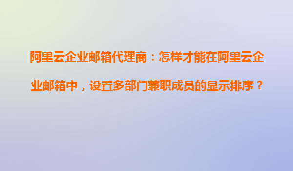 阿里云企業(yè)郵箱代理商:怎樣才能在阿里云企業(yè)郵箱中,設(shè)置多部門兼職成員的顯示排序? 作者:阿里云企業(yè)郵箱專家 一、阿里云企業(yè)郵箱的優(yōu)勢 阿里云企業(yè)郵箱作為國