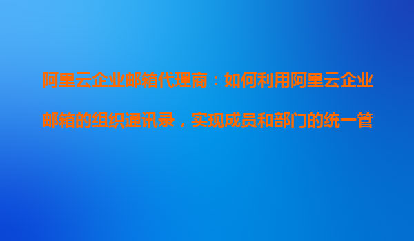 阿里云企業(yè)郵箱代理商:如何利用阿里云企業(yè)郵箱的組織通訊錄,實(shí)現(xiàn)成員和部門的統(tǒng)一管理? 一、阿里云企業(yè)郵箱的組織通訊錄功能簡介 阿里云企業(yè)郵箱作為一款專業(yè)的企業(yè)級郵件服務(wù),其內(nèi)
