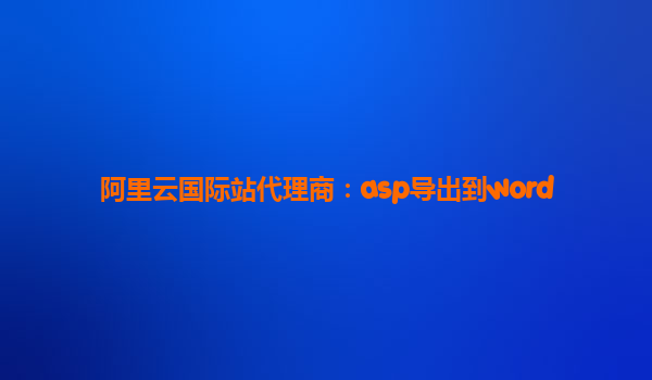 阿里云國際站代理商:ASP導出到Word的技術(shù)實現(xiàn)與優(yōu)勢解析 一、標題關(guān)鍵詞解析 標題"阿里云國際站代理商:ASP導出到Word"包含三個核心要素: 阿里云國際站代理商-指通過阿里云全球化服務(wù)體系