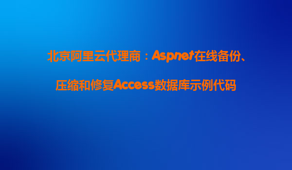北京阿里云代理商:Aspnet在線備份、壓縮和修復(fù)Access數(shù)據(jù)庫示例代碼 在現(xiàn)代企業(yè)的數(shù)據(jù)管理中,數(shù)據(jù)庫的穩(wěn)定性和安全性至關(guān)重要。特別是在使用Access數(shù)據(jù)庫的情況下,如何高效地進行備份、壓縮和修復(fù),成