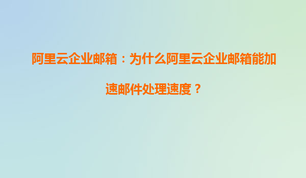 阿里云企業(yè)郵箱:為什么阿里云企業(yè)郵箱能加速郵件處理速度? 在當今快節(jié)奏的商業(yè)環(huán)境中,高效的郵件處理速度是企業(yè)溝通和協(xié)作的關(guān)鍵。阿里云企業(yè)郵箱憑借其強大的技術(shù)優(yōu)勢和豐富的功能,成為眾多企業(yè)