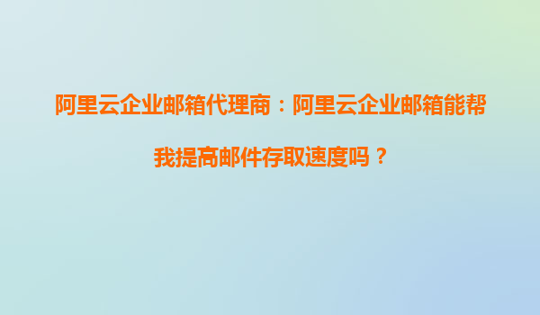 阿里云企業(yè)郵箱代理商:阿里云企業(yè)郵箱能幫我提高郵件存取速度嗎? 在當今快節(jié)奏的商業(yè)環(huán)境中,高效的郵件通信是每個企業(yè)成功運營的關(guān)鍵。很多企業(yè)都在尋找能夠提高郵件存取速度的解決方案,而阿里云企業(yè)郵
