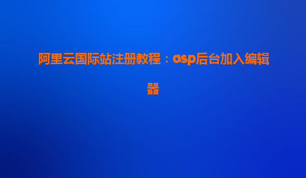 阿里云國際站注冊教程:ASP控件編輯器使用指南 一、前言 在Web開發(fā)和云端部署中,ASP控件編輯器是開發(fā)者常用的工具之一。本文將以阿里云國際站(AlibabaCloudInternational)為例,詳細介紹如何通過