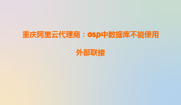 重慶阿里云代理商:ASP中數(shù)據(jù)庫(kù)不能使用外部聯(lián)接問(wèn)題分析與阿里云優(yōu)勢(shì) 在開(kāi)發(fā)基于ASP(ActiveServerPages)技術(shù)的Web應(yīng)用時(shí),開(kāi)發(fā)者常常需要與數(shù)據(jù)庫(kù)進(jìn)行交互以完成數(shù)據(jù)的增刪改查操作。然而,在使用ASP與某些數(shù)