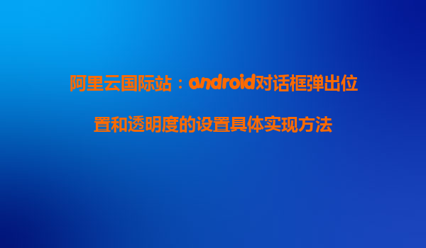 阿里云國際站:Android對話框彈出位置和透明度的設(shè)置具體實(shí)現(xiàn)方法 隨著智能手機(jī)的普及,Android平臺的應(yīng)用開發(fā)變得越來越復(fù)雜和多樣化。在開發(fā)過程中,許多開發(fā)者可能會遇到如何控制對話框的彈出位置和透明度的問題