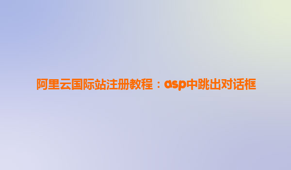 阿里云國際站注冊教程:ASP中跳出對話框 一、阿里云國際站簡介 阿里云國際站(AlibabaCloudInternational)是阿里巴巴集團(tuán)旗下的云計(jì)算服務(wù)平臺,為全球用戶提供穩(wěn)定、高效、安全的云計(jì)算服務(wù)。阿里